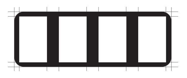 ![]() 2+2 panel, 4 chars with central division and horizontal tapers. |