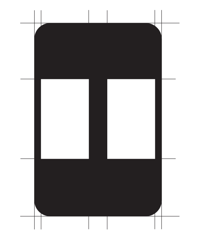 The longer horizontal, and inner vertical, cutting guides are set to the aperture size. The shorter horizontal and outer vertical guides are set to give a border of 1mm around the aperture, but it is up to you to choose a border size when cutting your decals from the sheet.