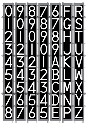 The character decals are available on waterslide decal paper with either an opaque white backing, or with a transparent backing (in this case the character shapes will be transparent). They will both need a flat support of suitable material such as plastic sheet. If you are to provide back-illumination for your panel, the white-backed decals are thin enough to allow some light through, but the illumination will probably need to be bright, and the support should be transparent. The transparent-backed decals allow much more light through, but the support will need to be a translucent white colour to give a white appearance to the characters when the illumination is switched off.