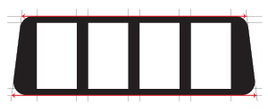 ![]() 2+2 panel, 4 chars with central division and horizontal tapers. |