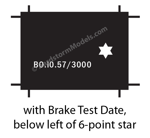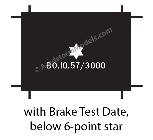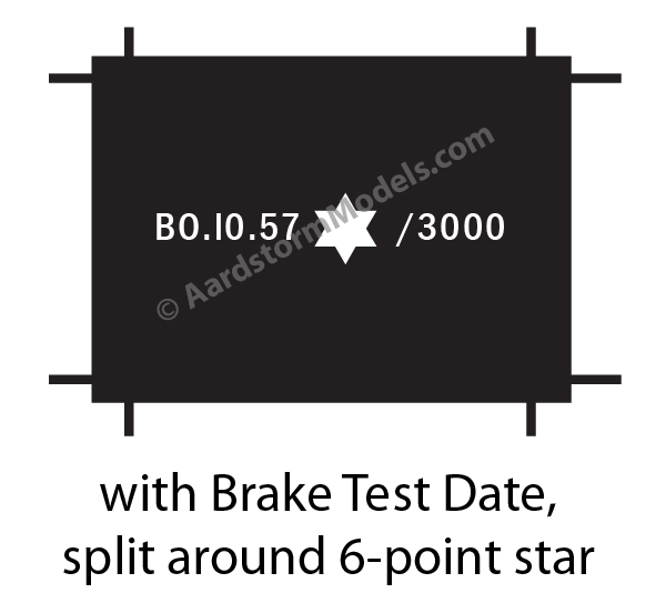 This page shows the range of wagon plate and markings decal available in this group. To use it to select a paricular decal type, please click on the button below the relevant illustration. This will take you back to the main wagon plates and markings decals page while setting the decal type to that of the illustration you have selected. There you will be able to make changes to the basic plate or marking decal you've selected here.