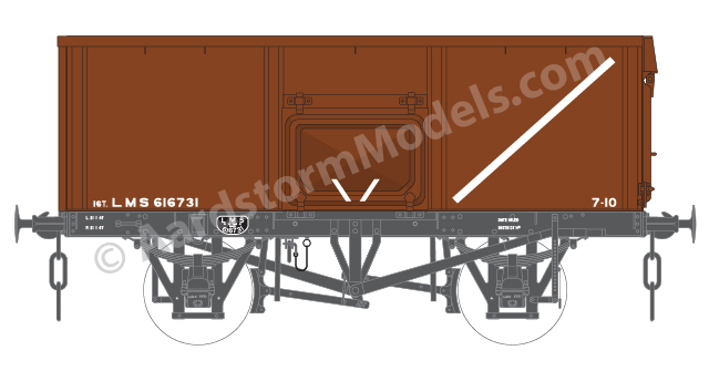 All of these wagons received LMS or LNER fleet numbers. The LMS wagons delivered after nationalisation were registered as private owner wagons with the various grouping railway companies. Those delivered after nationalisation received the standard "M" prefix for LMS-built wagons to their fleet numbers from new. The remainder received the appropriate "M" or "E" prefix on subsequent repainting. Brief details of fleet numbers are included in each drawing.