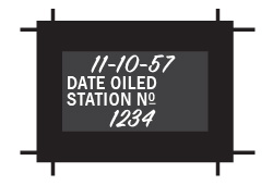 On many wagons the date on which the axlebox oil was last checked was also recorded. The format of this information does not appear to have been standardised, and generally followed the form used by the former grouping era company. This generally consisted of a black or grey rectangle for chalk markings, with painted prompts for the date and station or district where the check took place. The format of the actual chalk markings obviously varied considerably.