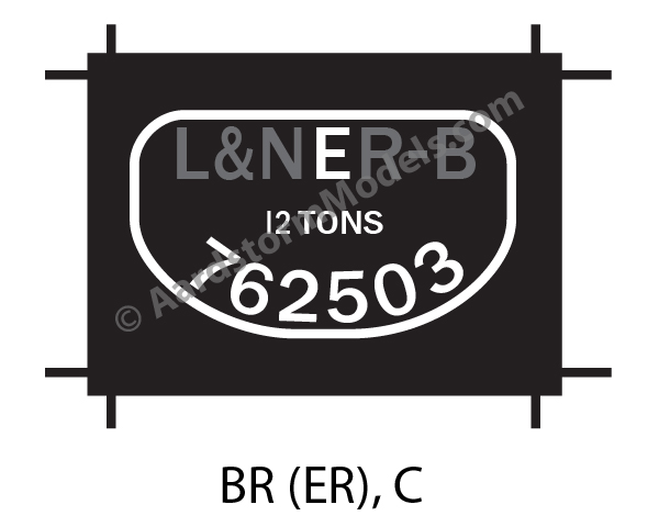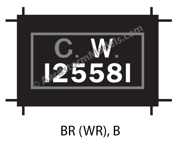 This page shows the range of wagon solebar plate or marking decals available in this group. To use it to select a paricular decal type, please click on the button below the relevant illustration. This will take you back to the main wagon plates and markings decals page while setting the decal type to that of the illustration you have selected. There you will be able to make changes to the basic plate or marking decal you've selected here.