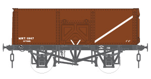 From 1944 the MWT began ordering wagons in large numbers and retained ownership of them. They were still registered as private owner wagons with the 4 grouping era railway companies. The majority of these wagons were of the Charles Roberts design, and were built by various manufacturers, as well as Charles Roberts themselves. A batch of nearly 900 wagons was also built by Hurst Nelson to a modified version of their own design – the additional intermediate side stanchions were dropped and the wagons were fitted with pressed steel side doors of the same design as the Charles Roberts wagons, having previously possibly been of fabricated construction. The MWT wagons were finished in a standard livery of bauxite, reputedly the same shade then currently being used by the LMS.