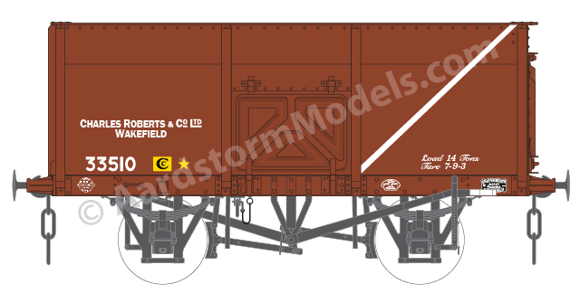 In 1939-40 Charles Roberts built a large batch of their standard 14T mineral wagons (the design that became diagram 1/100) without any doors for their customer Stewarts & Lloyds. These were used as coal tippler wagons and survived until well into the 1970s, including after Stewarts & Lloyds becoming part of British Steel. At the same period a large batch of larger 20T iron ore tippler wagons was built for the same customer by a mix of several builders. These had hopper-like bodies with substantial vertical stanchions, and were similarly long-lived.